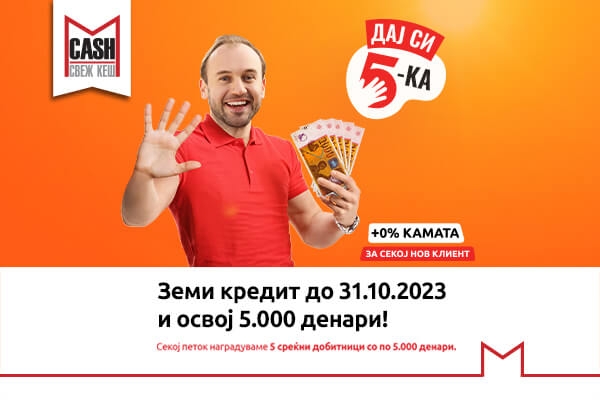 “Дај си 5-ка“ е твојата шанса до 5 000 денари СЕКОЈА НЕДЕЛА!